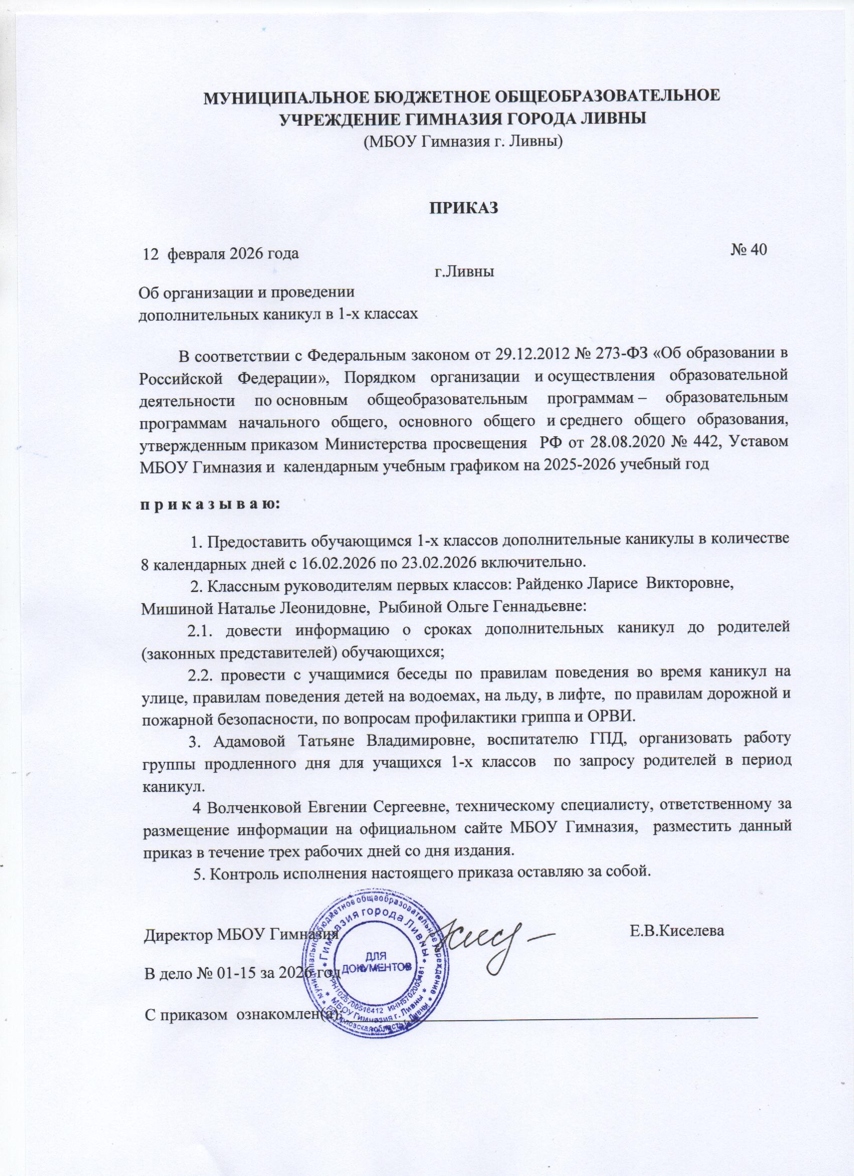 В Гимназии начались дополнительные каникулы для первоклассников